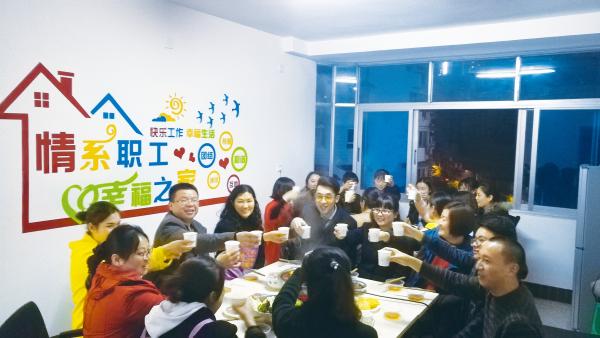 原來,結束了一天忙碌的工作后,渝北分公司“掛包幫”人員正和網點員工一起,為同事們“開小灶”。大家分工均勻,有的炒料,有的洗菜,有的切菜,有的擺盤,忙得不亦樂乎!不多時,鮮香麻辣的火鍋出爐,大家圍坐在一起親如家人,熱熱鬧鬧地邊吃邊聊。先回“家”的,自夸廚藝好,晚回“家”的,自覺舉手洗碗……歡聲笑語間,每個人臉上都洋溢著幸福的笑容。在這個溫暖的“家”里,美味的食物滿足了胃,幸福的相聚溫暖了心,大家齊齊舉起手中的可樂,祝愿工作蒸蒸日上、日子越過越火!