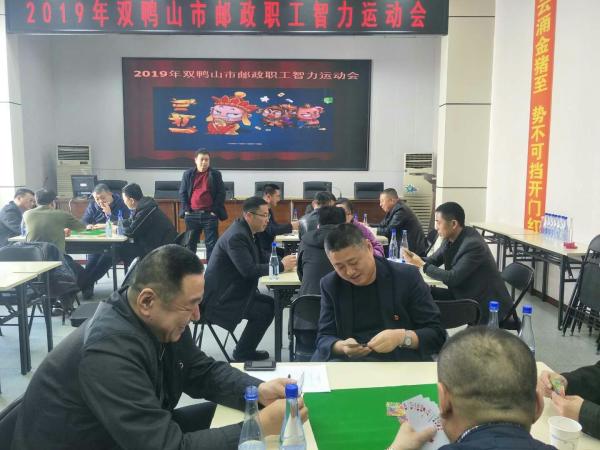 雙鴨山市郵政工會于4月4日上午,舉辦了2019年全市郵政職工三打一比賽活動。此次賽事是為了不斷豐富全市郵政職工的業余文化生活,增進職工間的溝通與交流而舉辦的,同時也將選拔優秀選手參加省郵政工會舉辦的2019年全省郵政職工智力運動會。三打一比賽共有20名選手參加,分為五個小組。上午8時30分,比賽拉開帷幕,市分公司副總經理、工會主席時紅軍親臨現場致開幕詞。大家在歡聲笑語中進行了抽簽和分組等程序后立即進行了比賽。賽場上雖然緊張但是卻不乏活潑友好氛圍,其中既要有合作又要有爭斗,三個一伙的也會不時用眼神進行交流和暗示,惹的莊家不得不微笑著提醒“注意牌風哈”;先進行完比賽的選手們駐足觀戰前四名的爭奪賽,比賽在歡樂的氣氛中共進行了近4個小時才結束。
