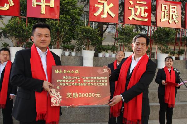 3月18日,曲靖市分公司在陸良縣分公司大院內(nèi)舉行隆重的表彰活動,總結(jié)、宣傳陸良縣分公司在全省首家提前292天完成全年余額發(fā)展目標的先進經(jīng)驗和具體做法。曲靖市分公司副總經(jīng)理、工會主席陳楠主持表彰會,省分公司金融業(yè)務(wù)部、曲靖市分公司領(lǐng)導(dǎo)及曲靖市、縣分公司相關(guān)領(lǐng)導(dǎo)、職工代表參加表彰大會。