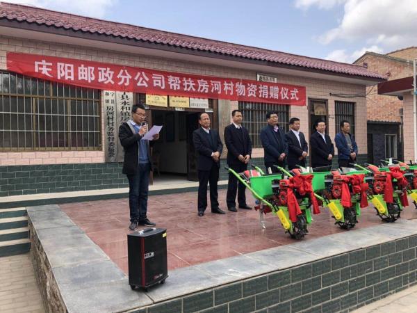 甘肅慶陽分公司、市郵政工會積極開展幫扶工作,4月9日,慶陽市分公司黨委書記、總經理柴建榮,紀委書記、副總經理賈炯和市局工會等部門負責同志一行來到結對幫扶貧困村,正寧縣永和鎮房和村,為該村捐贈辦公椅20把,玉米播種機5臺。