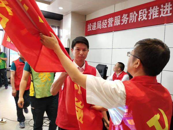 投遞局楊濤經(jīng)理為五個保障組授旗,并授王莉主任“2019投遞局櫻桃攬收戰(zhàn)區(qū)”大旗,王莉主任帶領(lǐng)投遞局所有參會人員進(jìn)行宣誓。大家激情飽滿,斗志盎然,樹立必勝信心,誓奪櫻桃寄遞戰(zhàn)役全面勝利。