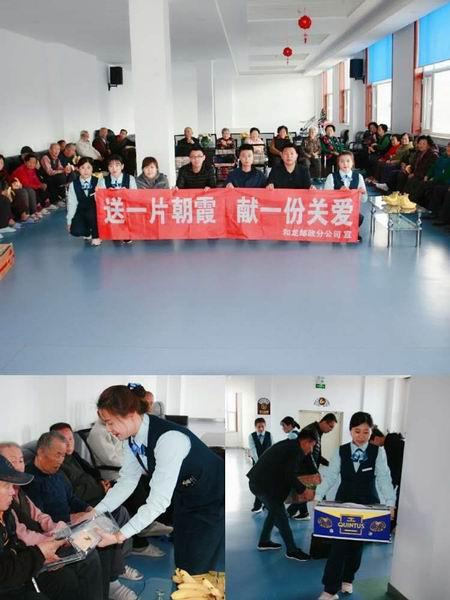 為進一步弘揚尊老、愛老、敬老、助老的中華民族傳統美德,倡導“奉獻、友愛、互助、進步”的志愿精神,4月26日,和龍市分公司組織了12名郵政青年志愿者,來到和龍市榮光敬老院開展“送一份朝霞,獻一份關愛”主題活動。