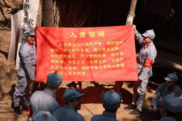 經過分班和分工,兩個班的“戰士”就在教導員的帶領下重新走上了“抗聯路”。一路上,大家參觀了抗聯的急救站、瞭望哨、指揮部等處。在“抗聯指揮部”,黨員重溫入黨誓詞、團員重溫入團誓詞,把整個活動推向了高潮。通過參觀“東北抗日聯軍第一路軍展覽館”,大家對革命歷史又有了更深一步的了解。為了真正體會當年抗聯戰士的艱苦,大家利用竹竿、繩子等工具制作了簡易擔架,把擬定的“傷員”抬到了休息區。之后,又分別出發上山尋找食材和清水,并親手烹飪了玉米面蔬菜湯,品著粗茶淡飯,想起革命先烈們艱苦卓絕的生活,青年職工們更進一步體會和理解了幸福生活的來之不易。當日下午,兩個班分別開展了旗語破譯和投彈練習活動。通過對旗語的編碼和解碼,“不忘初心、砥礪前行”的誓言在訓練場上久久回蕩。模擬木質手榴彈的投擲,讓“戰士”們體會到了實戰的辛苦。活動在“青春心向黨、建功新時代”畢業墻前的團歌聲中圓滿結束。