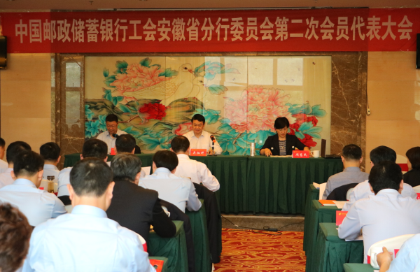 2019年4月25日至26日, 中國郵政儲蓄銀行工會安徽省分行委員會第二次會員代表大會在合肥勝利召開。全分行各級工會組織負責人、省分行部分部門主要負責人、勞模先進代表、管理人員代表、工會工作者代表和一線員工代表等共計93名會員代表參加了大會。