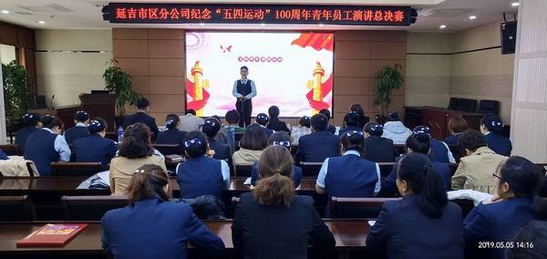 為紀(jì)念“五四運動”100周年,弘揚五四精神,傳播青春正能量,5月5日,延吉市區(qū)分公司紀(jì)念“五四運動”100周年青年員工演講總決賽拉開帷幕,來自不同網(wǎng)點的10名選手在初賽的28名選手中脫穎而出,參加了最終的總決賽。