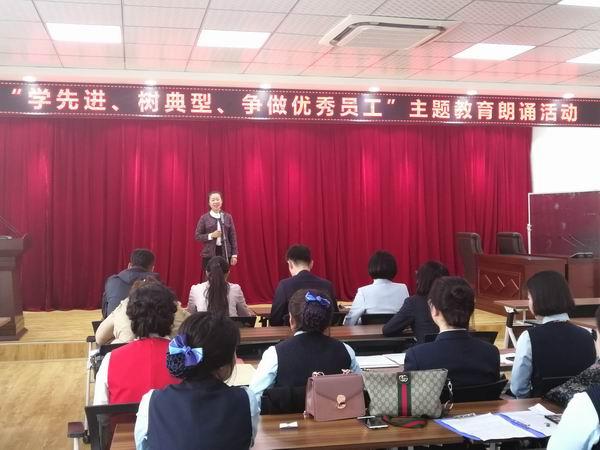 按照四平市分公司“雙創建、雙提升”方案要求,5月8日下午,梨樹縣分公司舉辦了“學先進、樹典型、爭做優秀員工”主題教育朗誦活動。此次活動吸引了各部室、各支局的11名員工參加。