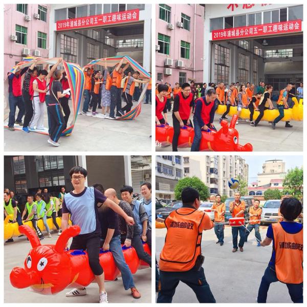 為慶祝 五一”國際勞動節和新中國70周年華誕,4月29日上午,浦城縣分公司工會在公司操場組織舉辦職工趣味運動會活動。共來自機關部室、網點支局156人參加了趣味活動。 本次運動會設立“毛毛蟲競速、無敵風火輪、同心鼓等比賽項目,分為紅、黃、藍、綠、粉、棕六組,均以小組賽的形式進行PK。各個項目的比賽緊張激烈、高潮迭起,整個活動現場熱鬧非凡,加油聲和吶喊聲不絕于耳,運動員們你追我趕,奮力拼搏,盡顯郵政員工團結協力、奮發向上、健康快樂的精神風貌。據悉,浦城縣分公司工會組織舉辦此次趣味運動會,旨在豐富職工節日文化生活,增強職工隊伍的團結協作能力,引領職工崇尚運動,健康生活。職工們紛紛表示,將把運動能量轉化為工作動力,發揚南平郵政“舍我其誰、奮發有為”的擔當精神,積極投入到南平郵政各項業務發展中去。(福建郵政工會)
