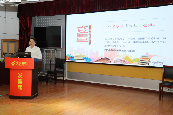 文進分享了《管理學》,從環(huán)境、決策、計劃、組織、激勵和控制等6個關鍵管理手段,領悟“管理一半是科學,一半是藝術,重在實踐、領悟和積累”。包裹快遞部經(jīng)理趙玉露分享了《變量》,從中美博弈、技術賦能、新舊融合、自下而上、重建社群5個方面,幫你洞察新機會,獲得歷史感。金融業(yè)務部管理員周艷霞分享了《皮囊》,她從本書的感人事例和經(jīng)典語句,說明了理想無關乎貧窮、富有、健康,不一定能實現(xiàn),但一定是要有。渠道平臺部湯莎分享《如何控制負面情緒》,情緒決定生活質量,疾病的根源就是負面情緒,控制負面情緒、享受健康和幸福。集郵與文化傳媒部文李龍分享《傅雷家書》,長輩通過家書,把人生體驗、道德修養(yǎng)傳授后代,展現(xiàn)新時代人們對道德、思想、情操、文化修養(yǎng)的注重與追求。市速遞物流公司萬蓉分享《接納孩子》,本書對中國父母教子的問題進行了系統(tǒng)地總結,結合案例理性分析,得出了最適合中國父母培養(yǎng)杰出孩子的方法。