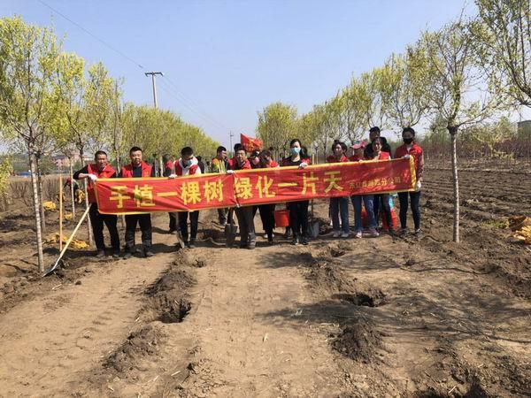 植樹活動現場,東遼縣分公司領導帶領大家一起揮鍬、培土、扶苗、填坑、踩土、澆水,大家穿梭往來,一派熱火朝天的勞動景象。經過一個上午的辛勤勞動,高質量地完成了150余棵樹苗的種植任務,為初春的東遼大地增添了濃濃綠意!