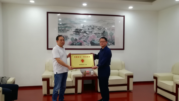 5月16日下午,池州市總工會黨組書記、副主席程軍,副主席姚國慶,市總工會副調研員、市直工會主席蘇朋樂等領導一行蒞臨池州市郵政分公司,現場頒發“安徽省五一勞動獎狀”和“安徽省勞動競賽先進集體”榮譽獎牌。 池州市郵政分公司黨委書記、總經理俞曉虎,工會主席、副總經理錢鵬等領導參加了授牌儀式。