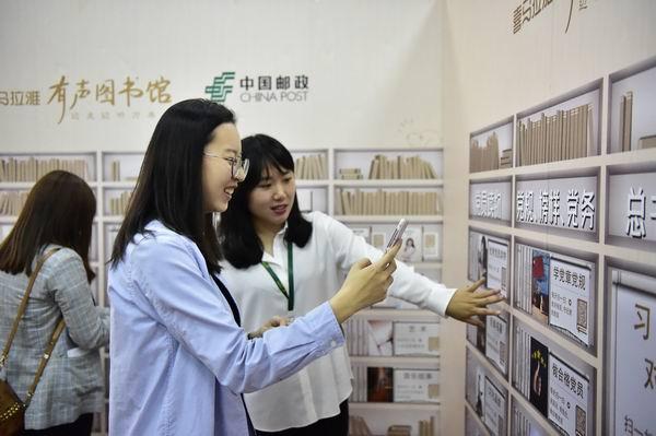 圖為在“郵文化”活動現場的有聲圖說展區,客戶現場掃碼收聽《習總書記對你說》