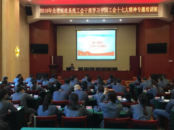 6月10日-6月13日,由中國郵政集團工會江西省委員會主辦的2019年全省郵政系統工會干部學習中國工會十七大精神專題培訓班,在省總工會井岡山職工培訓中心順利開班。中國郵政集團工會江西省委員會副主席胡萍和江西省總工會井岡山職工培訓中心副主任羅小莉參加了開班儀式并分別講話。全省郵政系統59名專兼職工會干部參加了培訓。