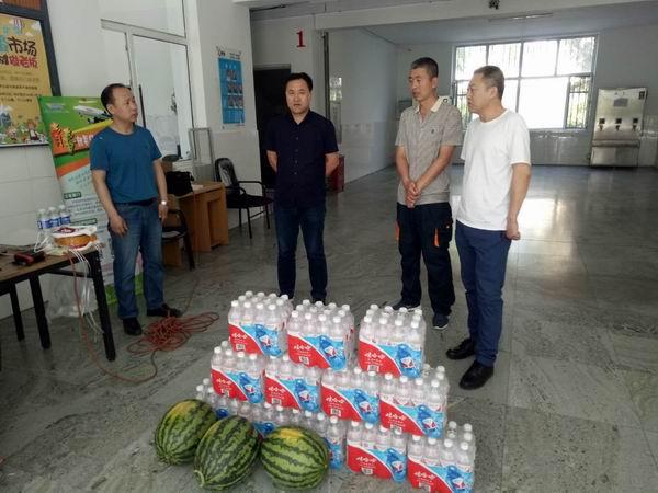 入夏以來,白城市持續出現高溫酷暑天氣,又恰逢校園包裹收寄戰役關鍵時期,為看望慰問奮戰在包裹收寄現場的一線員工,6月19日,白城市郵政工會主席姬忠友、副主席焦明帶著慰問品,來到白城市師范學院包裹收寄現場,為一線員工送去了礦泉水、西瓜等慰問品。