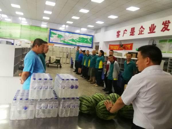 通化市分公司副總經理、工會主席吳立新與工會副主席蘇江清組成慰問組,來到寄遞事業部生產場地,為一線員工送去了西瓜、雪糕、礦泉水等解暑降溫的慰問品,給不畏高溫酷暑,仍然堅守在生產崗位的廣大員工送去夏日的清涼,也送去了企業對一線員工的體恤與關懷。吳立新要求全地區各級基層工會組織與工會小組,全面開展“夏送清涼”活動。特別是要認真做好高溫天氣下外勤職工的勞動保護工作,切實維護廣大職工的職業安全與健康權益,確保廣大職工平安度夏。(吉林郵政工會)