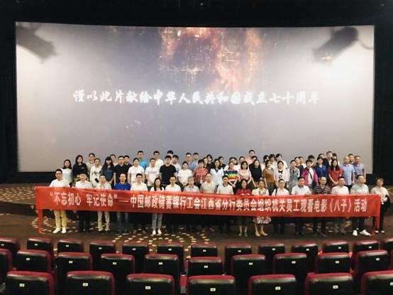 為了貫徹落實習近平新時代中國特色社會主義思想和黨的十九大精神,在“不忘初心、牢記使命”主題教育中講好紅色故事,傳承紅色基因,弘揚紅色文化,充分發揮愛國主義電影的教育宣傳作用,根據江西省委宣傳部、江西省委組織部、江西省直機關工委、江西省委教育工委、江西省總工會和團省委聯合印發的《關于認真組織觀看電影<八子>的通知》(贛宣字〔2019〕33號)的文件及省郵政工會的相關文件要求,7月3日-7月11日,省郵儲分行在全分行范圍內組織廣大員工觀看紅色電影《八子》,除部分員工因學習培訓、出差、生病住院和事假等原因未觀影外,全省郵儲分行實際觀影人數達到4716人。