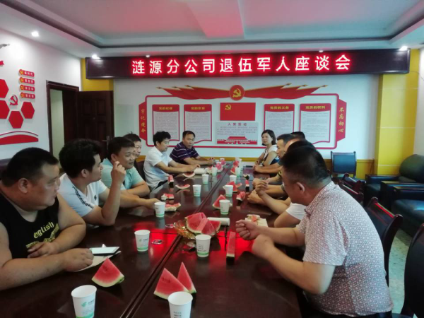為紀念建軍92周年,進一步營造擁軍優屬、擁政愛民的良好社會氛圍,7月31日下午,該公司在三樓會議室舉行退伍軍人座談會。來自分公司各崗位的退伍軍人齊聚一堂。分公司副總經理、工會主席蔣菲菲代表總支、行政、工會給他們送去了關懷和問候,營造出關心關愛退役士兵的濃厚氛圍。