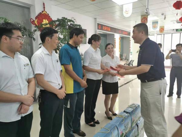 盛夏時節,驕陽似火。8月7日,省分公司副總經理熊榮一行來到鄂州,先后深入到楊葉郵政支局、壽昌郵政支局、石山投遞站、江廣投遞站慰問戰斗在一線的郵政員工。為基層員工送上慰問清涼盒及慰問金,并帶來省公司黨組的慰問及親切關懷。省公司寄遞事業部運管部總經理龐子培、省公司轉型辦張凌陪同慰問。