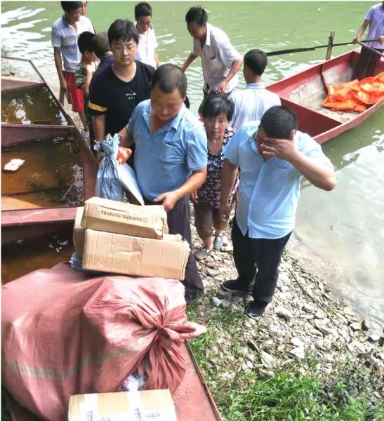 同時,投遞員劉云強立即聯(lián)系當(dāng)?shù)貪O船,在漁船師傅的幫助下,順利將76件包裹運到河對面。緊接著,他們將郵件一個個裝進郵袋,不顧道路阻塞和滑坡危險,扛在肩膀上就走。