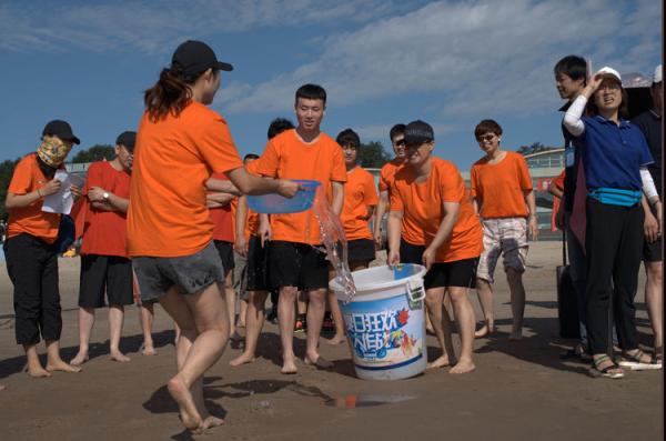 本次趣味運動會共有4個項目,均為集體項目。“積少成多”項目寓意我們的企業和各項業務,由小到大,由弱到強?!皺堰\八方”項目取材于大櫻桃戰役,寓意原產山海關的大櫻桃,通過郵政EMS“極速鮮”業務,快速寄達全國各地?!安秸{一致”項目寓意上下一心,協作配合,向全年各項目標沖刺?!昂I习魏印表椖吭⒁獠慌吕щy,愛拼才會贏。幾位書記、副總經理馮松親自為拔河比賽執裁,比賽現場氣氛緊張激烈,精彩紛呈。賽場上,參賽人員奮勇爭先,斗志昂揚;賽場下,隊友們鼓勁吶喊,此起彼伏。每輪比賽精彩激烈,妙趣橫生。大家在運動中收獲快樂,在比賽中增進團結,充分展示了秦皇島分公司廣大干部職工凝心聚力、砥礪奮進的昂揚風貌。(河北省郵政工會)