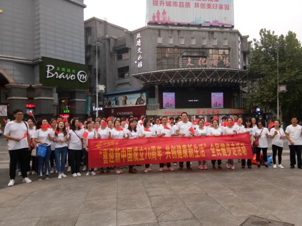 為迎接新中國成立70周年,營造積極向上的企業(yè)文化氛圍,同時為“攜手健步走,活過99“活動加大宣傳造勢。9月6日傍晚,重慶市北碚分公司組織70余名職工開展了“喜迎新中國成立70周年 共創(chuàng)健康新生活”全員健步走活動。全體員工統(tǒng)一著裝,圍繞北碚人流量最密集區(qū)域,通過高舉五星紅旗分兩路開展健步運動,主動向周邊市民和過路行人介紹活動目的并邀請合影打卡的方式,吸引了市民的廣泛參與和頻頻點贊,同時發(fā)放定制宣傳折頁引導市民去附近營業(yè)廳領取小禮品,增進網點客流量,進一步擴大了活動宣傳力度。經過一小時的健步行走和宣傳,最后全體員工手持紅旗在文化廣場匯合并現場合唱《歌唱祖國》向祖國致敬,將活動氛圍推向了最高潮。據悉,此次活動得到北碚電視臺的關注和現場采訪,進一步提升了郵政的企業(yè)形象及公眾認知度。