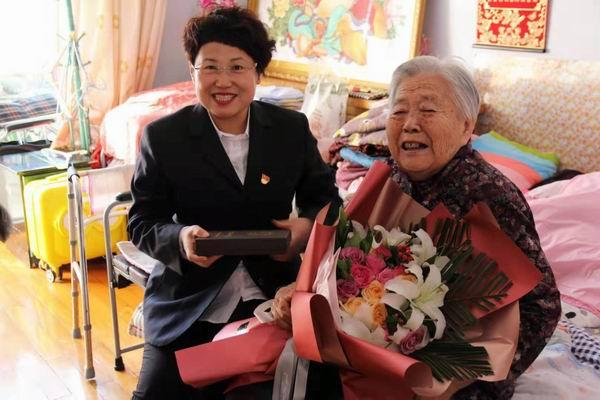 在慶祝新中國成立70周年之際,9月26日,敦化市分公司副總經理、工會主席崔琴英代表敦化市分公司對新中國成立前參加工作的老同志進行走訪慰問。
