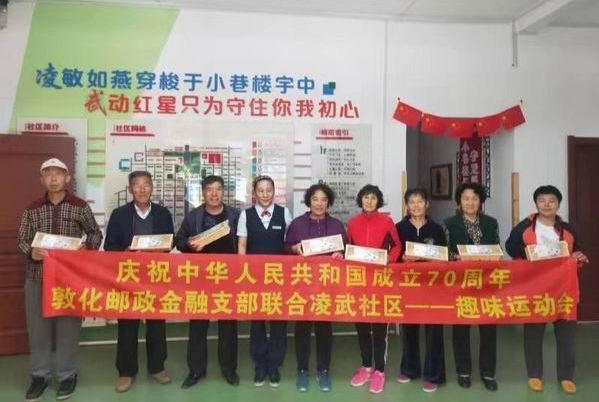 9月26日上午,敦化市分公司金融黨支部在曙光支局聯合凌武社區開展“慶祝中華人民共和國成立70周年 趣味運動會”活動。