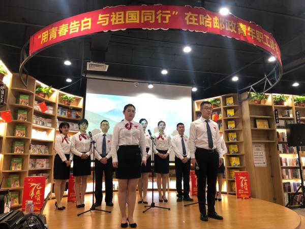 本次活動的主題是“用青春告白 與祖國同行”。青年職工們用熱情洋溢的感情和聲音深情誦讀了經典《祖國頌》《新青年敢作為 共筑中國夢》等;認真推薦分享了《紅樓夢》《讀書無用》《遠離無趣 追求自由》等,介紹了自己的讀書經驗和讀書感悟;還演唱了《不忘初心》《最美的歌送給媽媽》等,省郵政工會黨支部和哈爾濱市分公司報刊發行局黨支部聯合朗誦了《可愛的中國》。分享會的16個節目精彩紛呈,臺下的觀眾掌聲不斷。最后,讀書分享會在百余人大合唱的《歌唱祖國》歌聲中落下了帷幕。