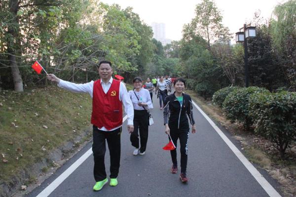 一路上,各參加活動人員沐浴著朝陽的光輝,在晨風(fēng)的輕拂中,興致高昂,揮舞著手中的國旗闊步向前。大家三個一群,五個一伙,一路上歡聲笑語不斷。在森林公園天然的氧吧中,隊員們拋掉煩惱,釋放壓力,步伐矯健地走向終點。在整個活動過程中,大家謹(jǐn)遵活動規(guī)則,始終保持了良好的活動秩序,愛護(hù)公共衛(wèi)生,踴躍學(xué)習(xí)、回答黨建題目,展現(xiàn)出撫州郵政員工良好的精神面貌。