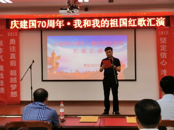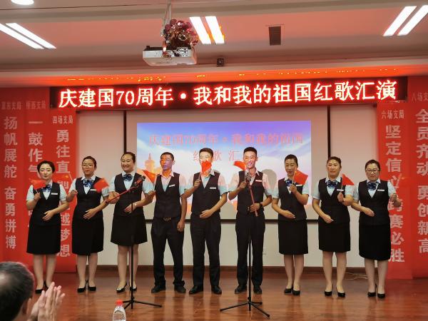 為喜迎建國70周年,振奮員工工作士氣,全力沖刺金融跨賽,9月17日晚,唐山曹妃甸區分公司組織“慶建國70周年·我和我的祖國”紅歌匯演活動。曹妃甸分公司領導班子及職工近200人歡聚一堂,共同為祖國提前“慶生”。