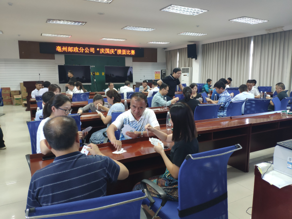 為豐富職工節日文化生活,愉悅身心健康,促進職工相互之間的交流,9月29日下午,亳州市郵政分公司在11樓會議室舉辦了“慶國慶”職工摜蛋比賽。
