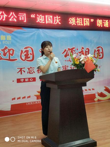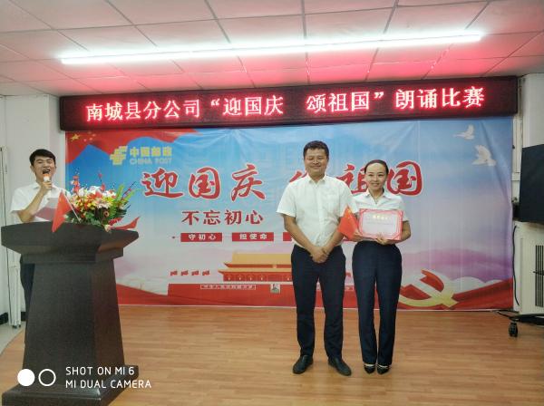 為隆重慶祝中華人民共和國(guó)成立70周年,大力弘揚(yáng)以愛(ài)國(guó)主義為核心的偉大民族精神,在全縣郵政廣泛開(kāi)展形式多樣、豐富多彩的群眾性主題宣傳教育活動(dòng),9月28日,我南城縣郵政工會(huì)舉辦了全縣郵政“迎國(guó)慶 頌祖國(guó)”朗誦比賽。