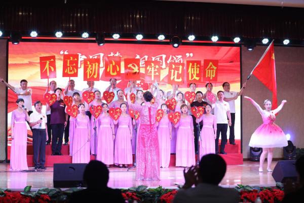 匯演圍繞“不忘初心跟黨走,頌歌唱響新時代”這一主題,在歌曲《中國中國鮮紅的太陽永不落》中拉開序幕。各代表隊身著統(tǒng)一服裝,懷揣對黨和祖國的熱愛,相繼演唱了《今天是你的生日》《歌唱祖國》《在燦爛陽光下》等15支歌曲,一首首鏗鏘有力、膾炙人口的經(jīng)典紅歌在會展中心唱響,讓觀眾的愛國之情油然而生。最后,全場激昂合唱《我和我的祖國》,整個會場紅旗揮舞,熱血沸騰,歌聲嘹亮,共同祝福我們偉大的祖國,將全場氣氛推至最高點。