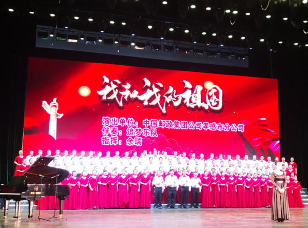 贊嘆我的祖國,“可上九天攬月,可下五洋捉鱉”,神舟飛天、玉兔登月;蛟龍潛海,航母入列。孝感市分公司120名員工作為唯一參加此次活動的企業代表隊,自豪地唱響了《我和我的祖國》,觀眾席上50人的郵政方陣手舉國旗與臺上的演員們一起揮舞、歌唱。唱響了郵政人對祖國的硬核表白,唱出了郵政人熱愛祖國的家國情懷。