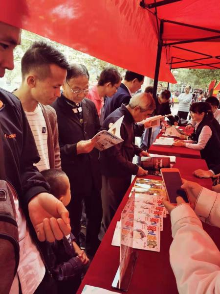 10月9日上午8時,九江市潯陽區煙水亭的一角人頭攢動,不少聞訊而來的市民在“世界郵政日”主題宣傳攤位前駐足停留。工作人員精心準備了紀念“第50屆世界郵政日”的宣傳單、宣傳折頁向過往市民發放,同時宣傳郵政普遍服務、電商扶貧、綠色品牌、代理金融等相關業務,普及防范金融詐騙和反假幣知識,并提供現場辦理報刊訂閱、集郵產品購買等服務,進一步彰顯郵政企業的社會責任和使命。