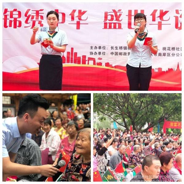 為慶祝祖國母親70歲生日,弘揚中華民族敬老、愛老、助老的傳統美德,豐富廣大人民群眾文化娛樂生活,中郵重慶市南岸區分公司長生橋支局聯合桃花橋社區在富翔廣場舉行“錦繡中華,盛世華誕”慶祝建國70周年文藝演出。