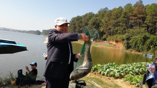 “哇!又一條大鯽魚上鉤啦”!伴隨著歡呼聲,一條活蹦亂跳的鮮魚被營業(yè)局胡友濤手腳麻利地收進(jìn)魚護(hù)。