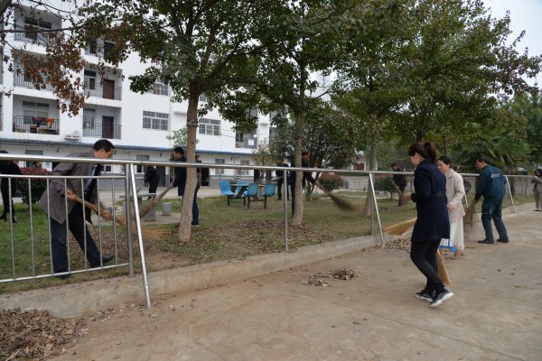 同時,為了給老人們提供一個干凈、舒適的散步、鍛煉環境,對福利院院內落葉進行了打掃。大家充分發揮不怕苦、不怕累的優良作風,手拿掃帚、拖把、水桶等清潔工具,五人一組,分工合作,掃的掃、裝的裝、運的運,在大家的齊心合力下,經過一個多小時的清理,福利院的庭院被打掃的干干凈凈,煥然一新,為老人們營造了一個干凈、溫馨的生活環境。