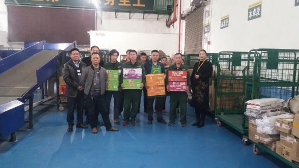 上下齊心,同迎旺季,各基層單位立即行動,落實上級工作部署。 永善縣郵政工會11月14日,永善縣郵政總經理周寶,工會主席周顯祥對奮戰一線的分揀封發、攬投站全體職工進行了慰問,為奮戰在“雙十一”的一線人員送去了牛奶、面包、方便面、礦泉水等一批慰問品。鎮雄縣郵政工會:11月14日,在“雙11”投遞高峰期到來之際,鎮雄縣郵政分公司黨支部書記、總經理嚴虹慰問組一行到郵件分揀中心向投遞員、分揀員送去關愛和溫暖,并為一線工作人員送上慰問品,鼓勵他們,在生產特殊時期,要繼續發揚吃苦耐勞的服務精神,圓滿完成工作任務......