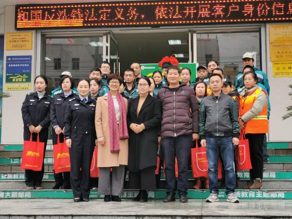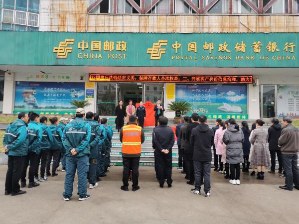 11月28日上午9點,鉛山縣總工會聯合鉛山縣郵政分公司舉辦的“郵愛驛站”啟動儀式在河口鎮郵政營業所舉行??h總工會副主席石婷,縣郵政分公司副總經理、工會主席查麗麗、縣交警大隊車管所所長余笑蕾及縣郵政分公司各部門負責人、環衛工人、快遞員、協警等戶外工作者代表等出席了啟動儀式。查麗麗、石婷、余笑蕾共同為郵愛驛站揭牌,并向勞動者代表贈送了愛心禮包。