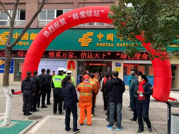11月28日上午9點,由玉山縣總工會與玉山縣郵政分公司聯合舉辦的“郵愛驛站”揭牌啟動儀式,在玉山縣冰溪郵政所隆重舉行。縣總工會副主席楊慧芬、縣總工會辦公室主任孫清、縣郵政分公司副總經理徐小明、縣郵政分公司副主席周日飛,以及縣志愿者協會、縣交警大隊、縣城市管理局、縣環衛處、縣快遞企業等20多名戶外勞動者代表出席了揭牌儀式。