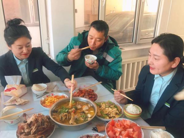 11月28日上午,集賢分公司工會主席田之勇攜相關工作人員,帶著為“小家”購買的床品、鍋具、以及新鮮果蔬,分別來到豐樂和升昌兩個支局,親手為職工們做愛心午餐。大家其樂融融,滿懷欣喜,一起慶?!靶录摇钡目⒐?。