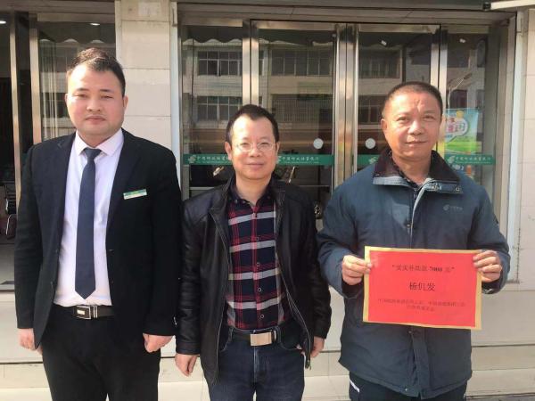 11月份,江西省郵政工會將集團工會和省郵政工會補助的3.5萬元受災員工愛心款下發給撫州市郵政工會。撫州市郵政工會根據員工家庭受災程度,核給楊仉發7000元補助款