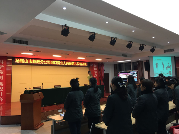為進一步規范員工禮儀,增強員工的自身素質,提升企業形象。馬鞍山市郵政分公司、工會于2019年12月3日在11樓多功能廳開展全體網點營業人員禮儀培訓。