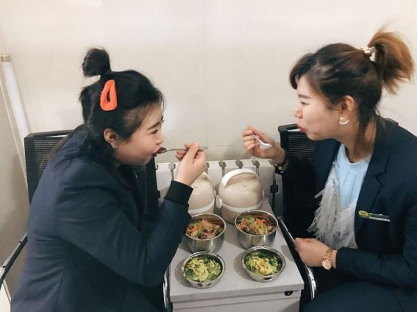調(diào)研中,工會發(fā)現(xiàn)城市配餐網(wǎng)點繁榮所,業(yè)務(wù)繁忙時,串班午休晚的職工存在“吃熱飯難”的問題。為了進一步做好職工的后勤保障,工會為繁榮所的職工們購買了環(huán)保優(yōu)質(zhì)的加熱飯盒,確保一線職工隨時都能吃上熱氣騰騰的飯菜。