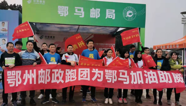 12月1日上午8時,由鄂州市人民政府舉辦的2019鄂州國際半程馬拉松賽在鄂州鳳凰廣場鳴槍開跑;來自世界各地6000多名選手參加了比賽。比賽設置項目有半程馬拉松(21.0975公里)、微型馬拉松(10公里)、迷你馬拉松(5公里)。市分公司組織60余人參加了本次馬拉松比賽,并在賽場設立鄂馬郵局,宣傳鄂州、宣傳郵政業務,展示郵政風采。盡管天氣寒冷,鄂州郵政跑團隊員的熱情不減,個個精神抖擻,活力滿滿。