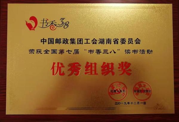 近年來,湖南省郵政工會大力倡導全民閱讀,以“書香三八”、“書香郵政”、“綠色書吧”、“電子書屋”為載體開展讀書活動。在省總工會、集團公司工會的倡導下,認真組織“書香三八”讀書活動,深耕細作引領全省女職工閱讀,將之作為女職工素質提升的重要舉措;深入開展“好家風,女職工在行動”活動,甄選下發高品質書籍讓女性引領閱讀,傳承家風;通過素質講堂,團結帶領廣大女職工在奮斗中播種希望,收獲夢想。自2016年來,向全國“書香三八”讀書活動組委會推選優秀作品千余篇,獲獎作品達30余篇;連續獲得第六屆、第七屆全國“書香三八”讀書活動優秀組織獎。