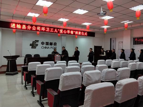 為了讓通榆縣環(huán)衛(wèi)工人在付出艱辛勞作的同時能夠吃上熱乎乎的免費“愛心早餐”,通榆縣郵政分公司積極響應(yīng)通榆縣慈善總會號召,于12月23日上午,舉辦了為環(huán)衛(wèi)工人“愛心早餐”捐款儀式,全體郵政員工帶著一份敬佩之情、友愛之心,紛紛慷慨解囊,在自己并不富裕的收入中拿出一部分錢款,奉獻了一份愛心,傳遞了一份溫暖。