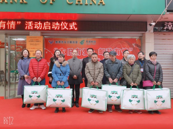為弘揚中華民族團結友愛、互幫互助的優良傳統,進一步促進鷹潭市精神文明建設,2020年1月3日下午,鷹潭市月湖區郵政分公司與市慈善總會、環保局、義工聯合會開展了以“衣舊有愛,郵政有情”的主題活動。此次活動在區公司環城東路郵政所舉行,鷹潭市民政局副局長王松泉、市郵政分公司黨組成員、副總經理吳鎮林、鷹潭市慈善總會主任袁衛紅、鷹潭市總工會經濟技術和權益維護部部長孔浩、鷹潭市義工聯合會會長孫欲曉、鷹潭市義工聯合會副會長謝躍龍、月湖區郵政分公司總經理辛志琴以及義工代表、受捐困難家庭、環衛工人代表、愛心學生代表、媒體代表等人員參加了活動啟動儀式。辛志琴主持啟動儀式,孫欲曉作活動介紹,吳鎮林致辭,王松泉講話。