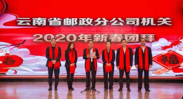 春滿神州喜滿懷,紫氣滿堂萬象新。中國農歷“小年”來臨之際,云南省郵政分公司舉辦2020年“龍騰獅躍賀新春”團拜活動。分公司黨委班子全體成員、各單位領導及職工代表230余人參加。