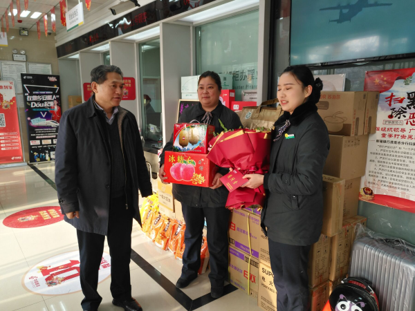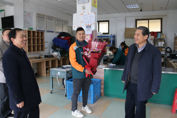 1月14日下午,安徽省分公司馬俊林副總經理帶領工會相關同志來到蕪湖市分公司,看望慰問安徽省勞動模范潘紅,讓勞模感受到省分公司黨組和企業的關心關愛,感受到工會的溫暖。走訪慰問中,了解他們工作和生活情況并為勞模送去慰問品,希望通過慰問勞模同志,號召廣大郵政職工要大力弘揚勞模精神、勞動精神、工匠精神,立足本職,刻苦鉆研,勤奮工作,深入踐行新發展理念,主動對標、立標、達標,堅持普服為“根”、客戶為“本”,堅持質量第一、效益優先,堅持“五化”引領,全面助力郵政企業的高質量發展。馬俊林副總經理隨后前往特困職工蘇長寶家中,關心他的身體和生活狀況,鼓勵他堅定信心、積極治療、戰勝病魔。在退休職工張金忠家中,馬俊林副總經理和老同志促膝長談,對老同志們關心企業發展表示感謝;馬俊林副總經理還說,他到蕪湖來看到蕪湖市分公司局容局貌日新月異,業務發展勢頭也非常好,非常高興,老同志們雖然已經安享晚年生活,但都心系企業,也要?;亍凹摇笨纯础=Y束走訪之前,馬俊林副總經理還來到蕪湖寄遞事業部郵區中心局處理中心作業現場和蕪湖寄遞事業部物流業務分公司,查看郵運旺季生產情況,對網運職工送去省公司黨組的誠摯祝福與問候,要求蕪湖分公司做好節日期間生產作業安排,確保網運生產安全、通暢,做好節日期間堅守崗位的員工后勤保障工作,過一個安定祥和的春節。